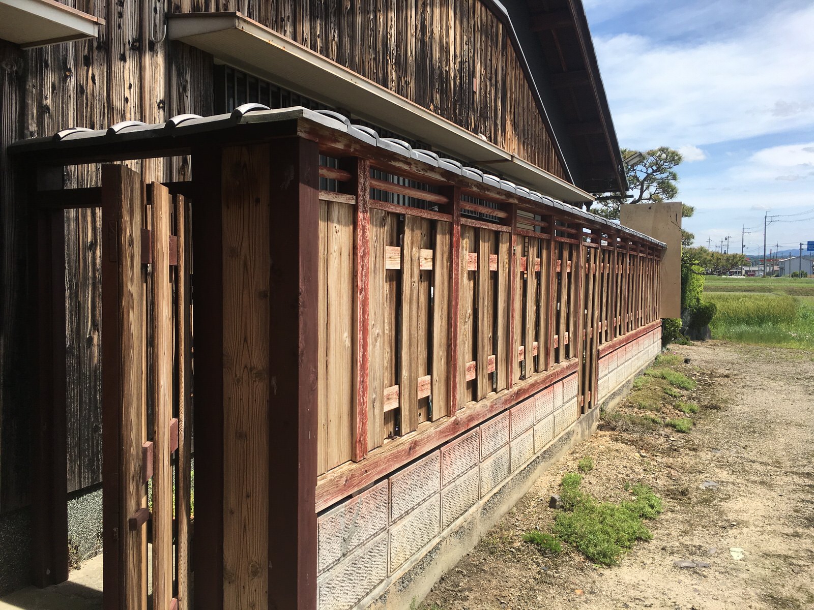 ① 塗装前の状態です。手前部分の紅ガラは以前に新規で立て直した箇所の為、比較的綺麗ですが、その他の箇所はかなり剥げています。