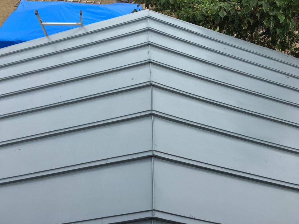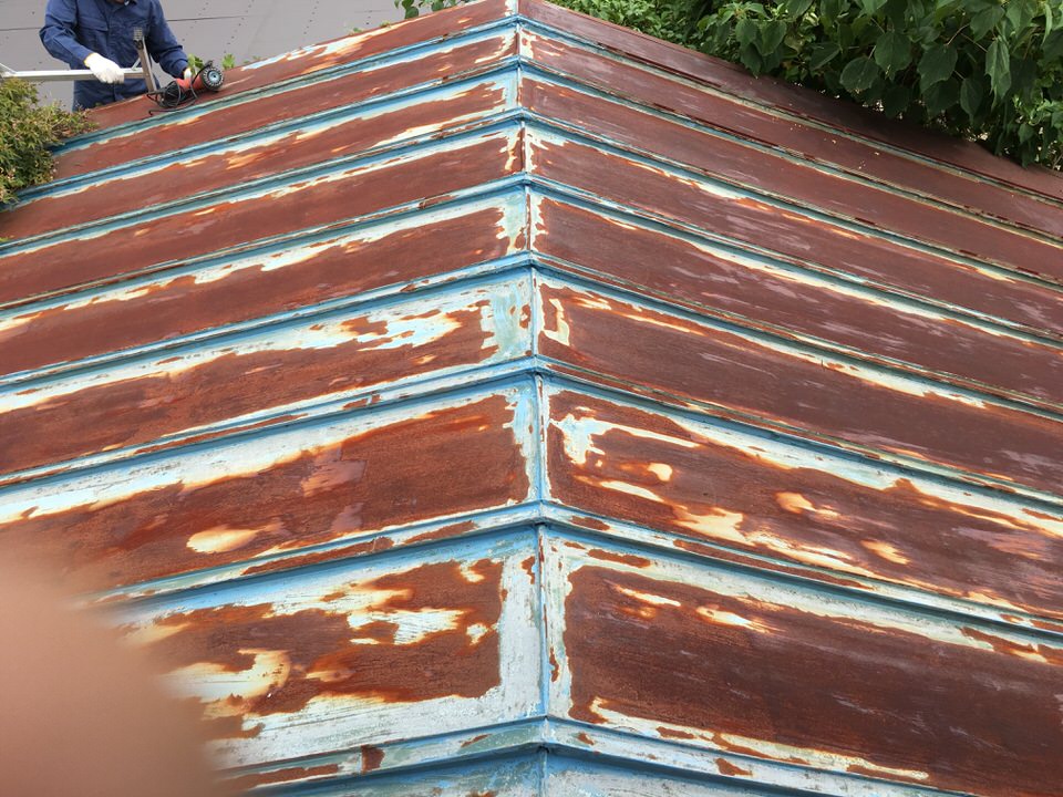 瓦棒塗装 東近江市(A邸) 塗装前の状態です。かなり錆が広がってます。 ① 瓦棒の塗装ですが、錆がかなり広がっています。 今回は、「錆止め入りシリコン塗料」を使用。 別角度からみても全体に錆が広がってます。 ② 反対側から撮影。 錆止め入りシリコン塗料で施工。 ③ ケレン後、一回塗りで対応。 ※この「錆止め入りシリコン塗料」の一回塗りはメーカー指定でもあります。 色目はグレー ④ 反対側から撮影。色はグレー。 通常は3回塗りが基本ですが、お客様の要望に添った対応をさせて頂きます。