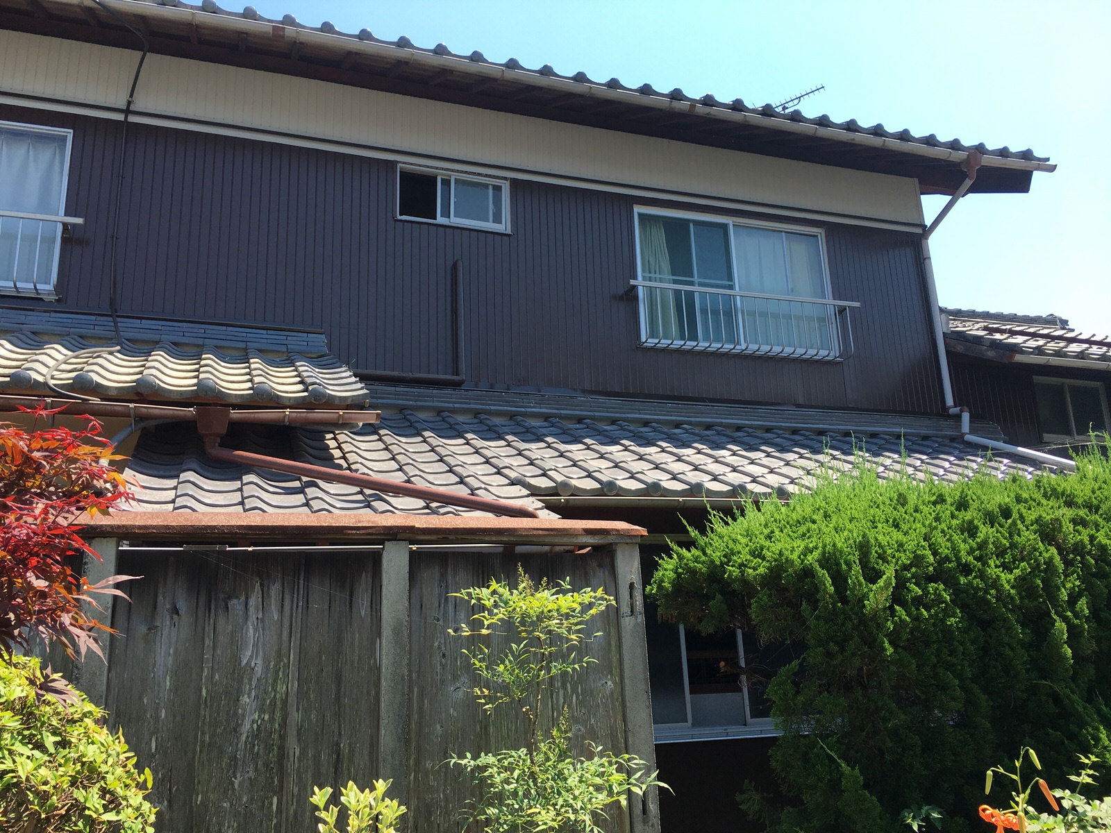 瓦葺き替え 蒲生郡(Y邸) 下屋根のノシ瓦や平瓦の劣化が著しく葺き替えを実施 ① 下屋の瓦葺き替えです。 面積は約15㎡。 土葺きから桟葺きに葺き替え。 釉薬の万十瓦。 産地は三州瓦。 この後、コンパネ施工後ルーフィングを貼りし桟葺きします。 屋根上重量の軽減にも貢献します。 ② 瓦と杉皮を除いて、残土を清掃している途中です。 この後、コンパネを敷いてルーフィング施工後に桟の上に瓦を葺いて行きます。 土の重量分が少なくなりますので、軽量化に貢献します。 冬期に凍てつく地域では三州瓦がお薦めです。 ③ 完成。 のし瓦/漆喰も綺麗に収まっています。 冬期に凍結の可能性がある地域では、三州産をお薦めします。